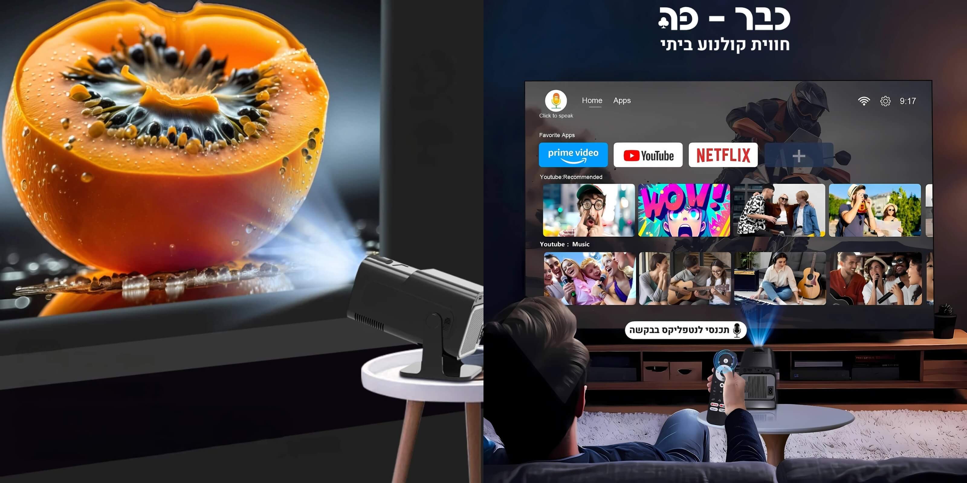גם בלי חיבור לכבלים אפשר להנות מכל הערוצי החדשות, הספורט והבידור באמצעות הורדת אפליקציות חינמיות בחנות ה - Google Play המובנת במערכת המקרן.