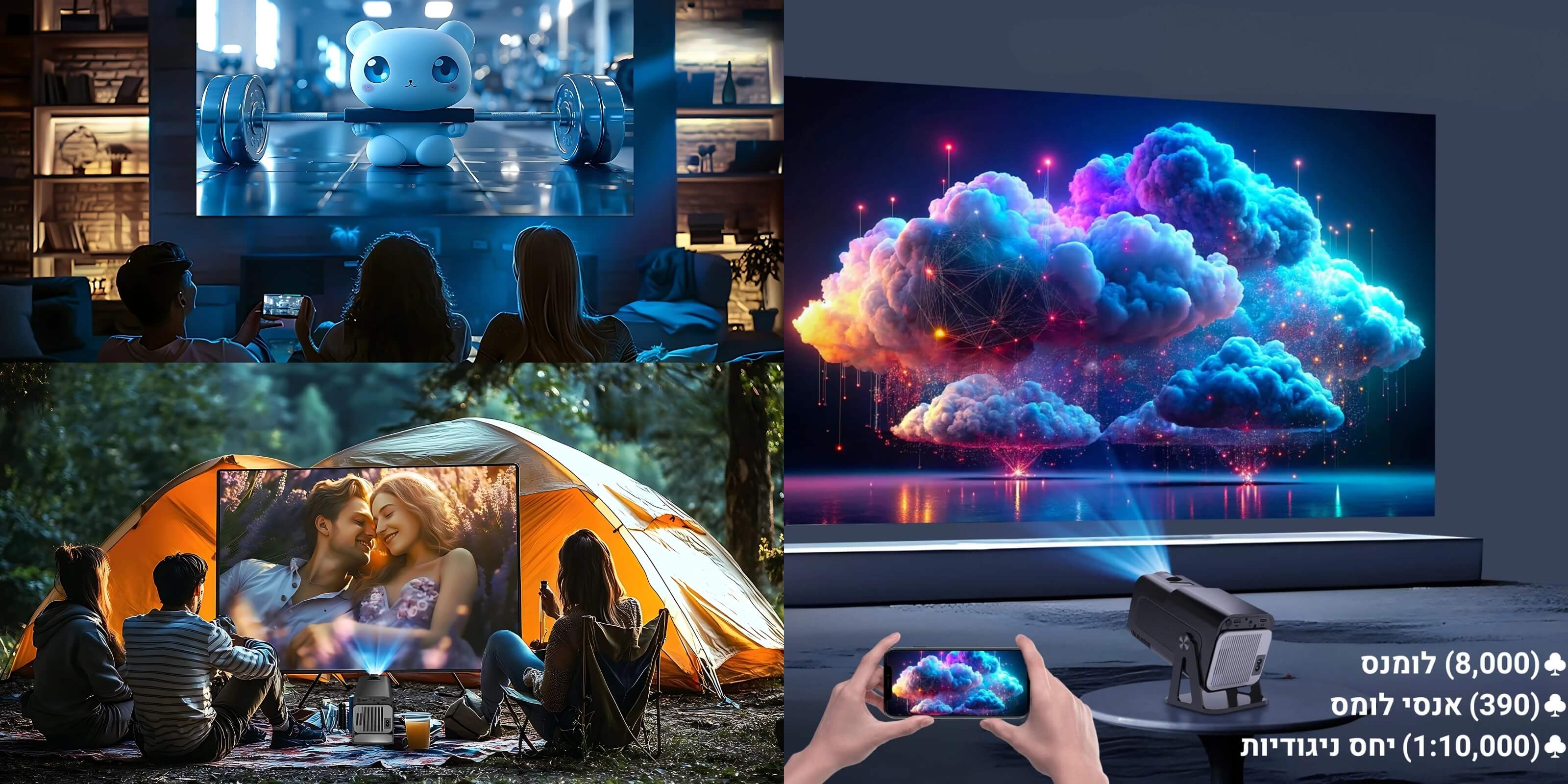 •מרחק הקרנה אידיאלי: 1.2 - 4 מטר